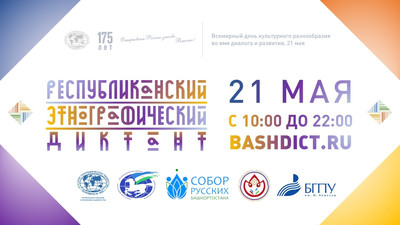 21 мая в Башкортостане прошёл Республиканский этнографический онлайн-диктант в виде теста. Организаторы мероприятия — региональное отделение Русского географического общества в Республике Башкортостан, Международный союз общественных объединений «Всемирный курултай (конгресс) башкир», региональная общественная организация «Собор русских Башкортостана», региональная общественная организация «Национально-культурная автономия татар Республики Башкортостан» и Башкирский государственный педагогический университет им. М. Акмуллы. Диктант посвящен 175-летию основания Русского географического об ... Читать дальше » |