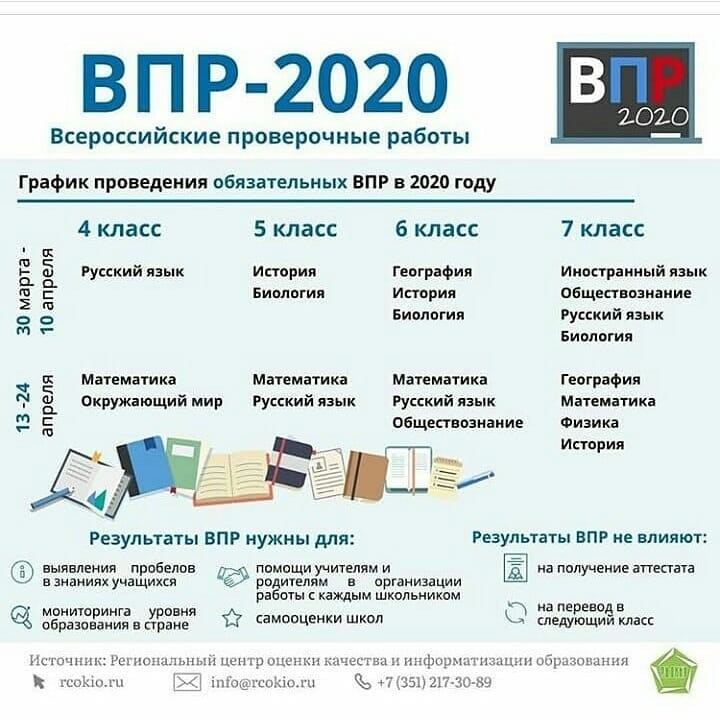 Согласно графику , со 2 по 20 марта пройдут ВПР для обучающихся 10-11 классов, которые напишут работу по географии. Далее одиннадцатиклассники напишут ВПР по тем учебным предметам, которые не выбрали для сдачи на ЕГЭ. С 30 марта по 24 апреля состоятся ВПР для обучающихся 4-8 классов по нескольким учебным предметам. При этом для школьников с 4 по 7 класс ВПР проводятся в штатном, обязательном режиме, тогда как участие 8, 10, 11 классов в ВПР в 2020 году проводится в режиме апробации, то есть школы самостоятельно принимают решение о проведении данных контрольных работ для обучающихся.