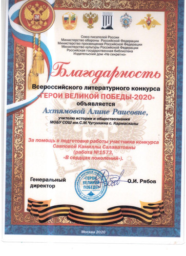 Всероссийский литературный конкурс "Герои Великой Победы-2020"